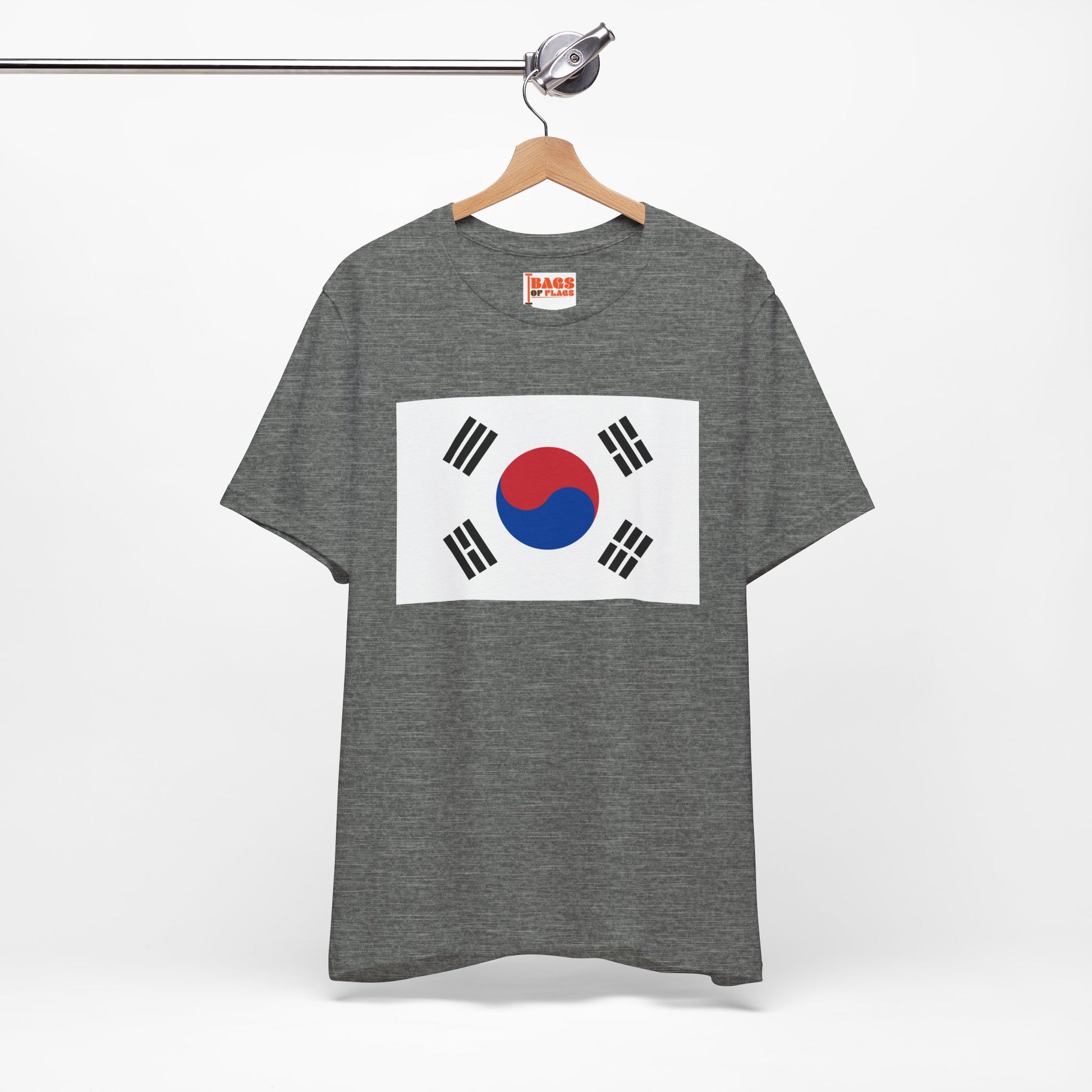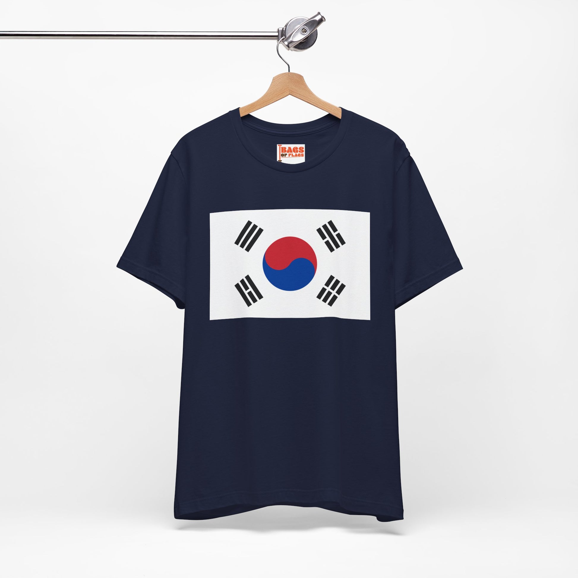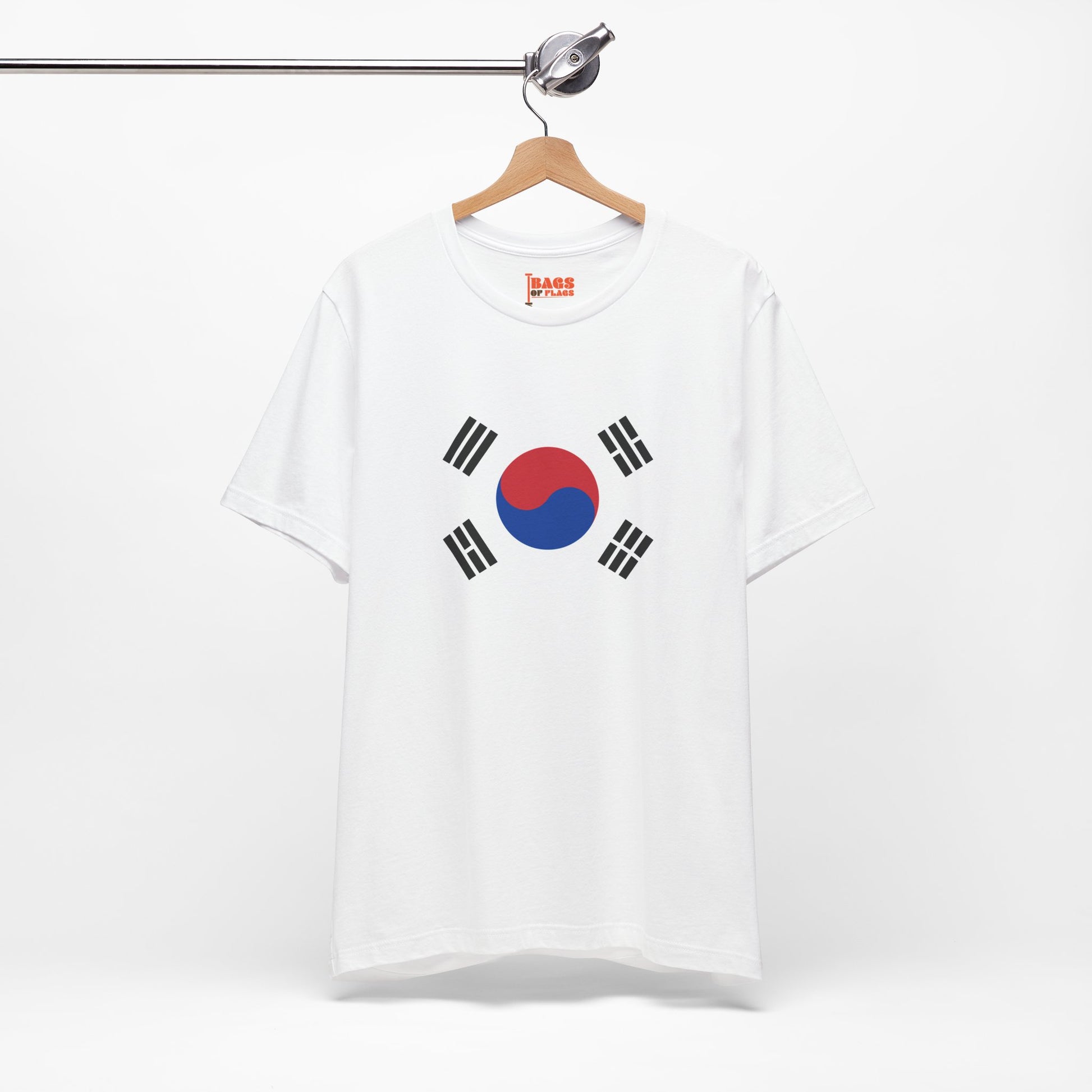 Celebrate the rich heritage and powerful symbolism of South Korea with the South Korea Flag on T-shirt. Featuring the iconic Taegukgi, this design proudly displays the vivid red and blue yin-yang symbol at the center, surrounded by four black trigrams representing harmony, balance, and the elements of nature. Whether you’re honoring your Korean roots, fascinated by Eastern philosophy, or simply love clean, meaningful designs, this tee brings tradition and style together effortlessly.