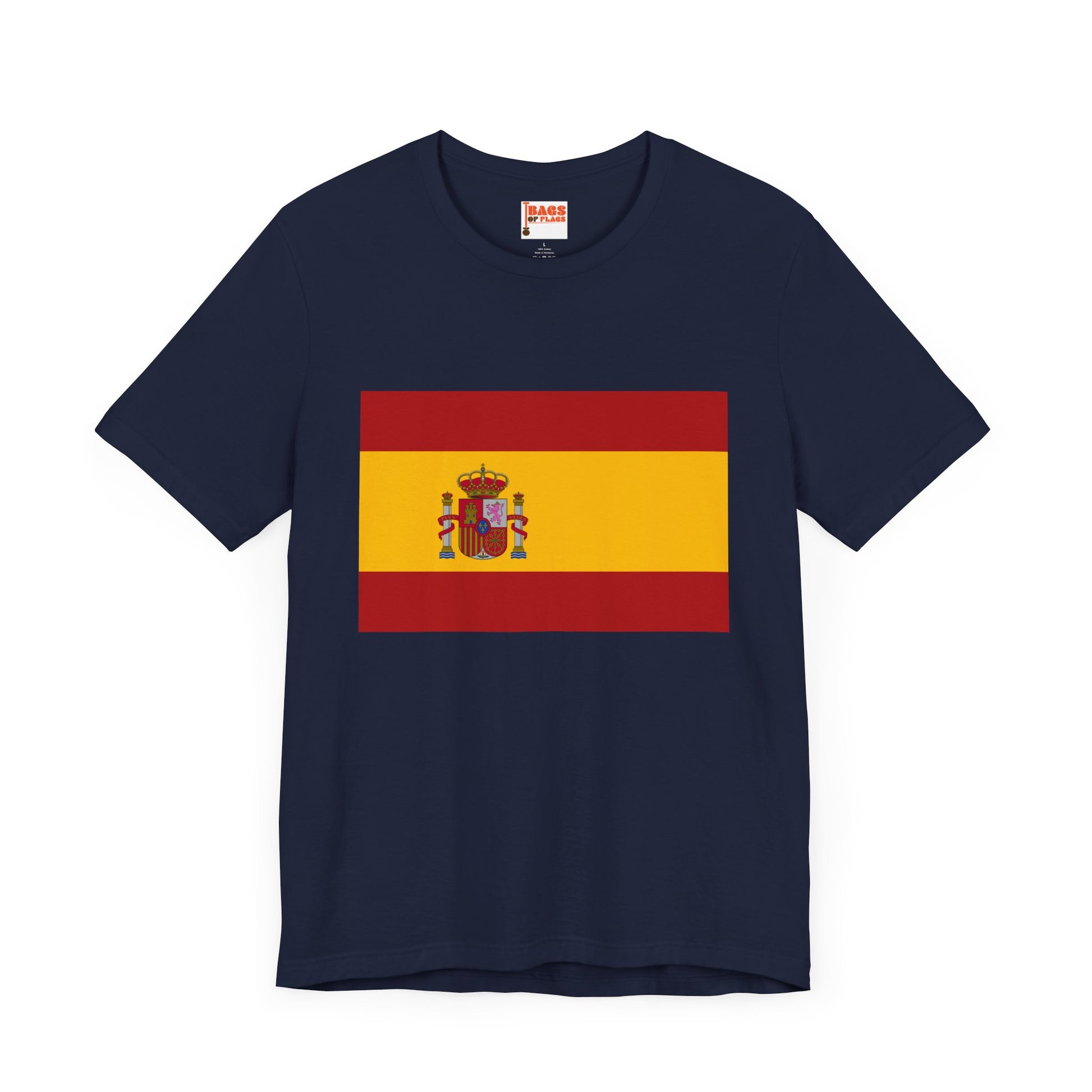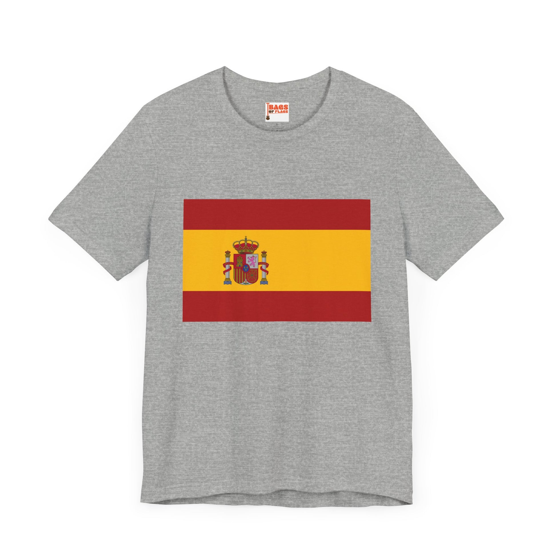 Made from 100% ethically sourced US cotton, the fabric is soft, breathable, and durable enough for everyday wear. The classic unisex fit ensures comfort, while taped shoulders and no side seams prevent irritation. The tear-away label keeps things itch-free, so you can focus on showing off the bold Spanish flag wherever you go.