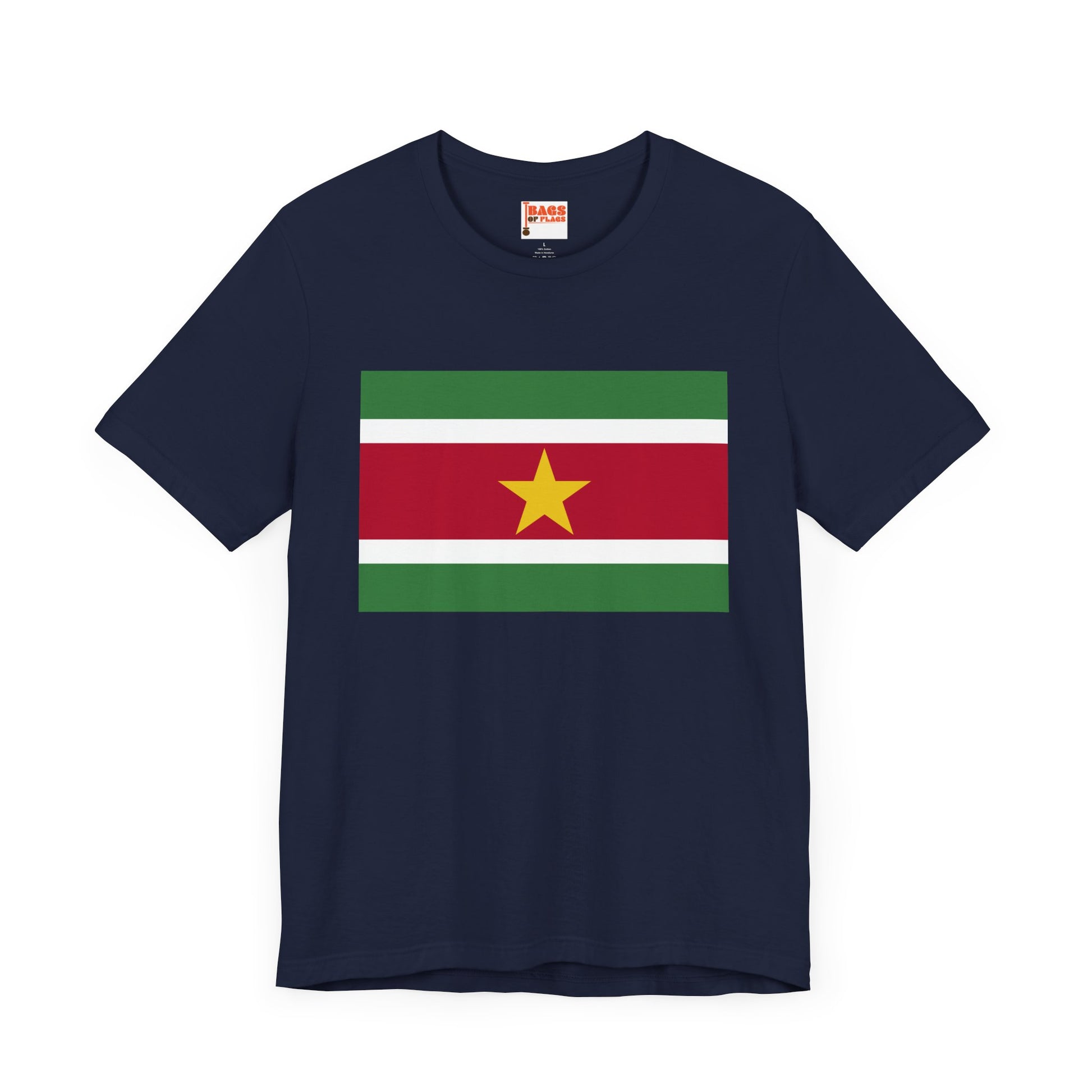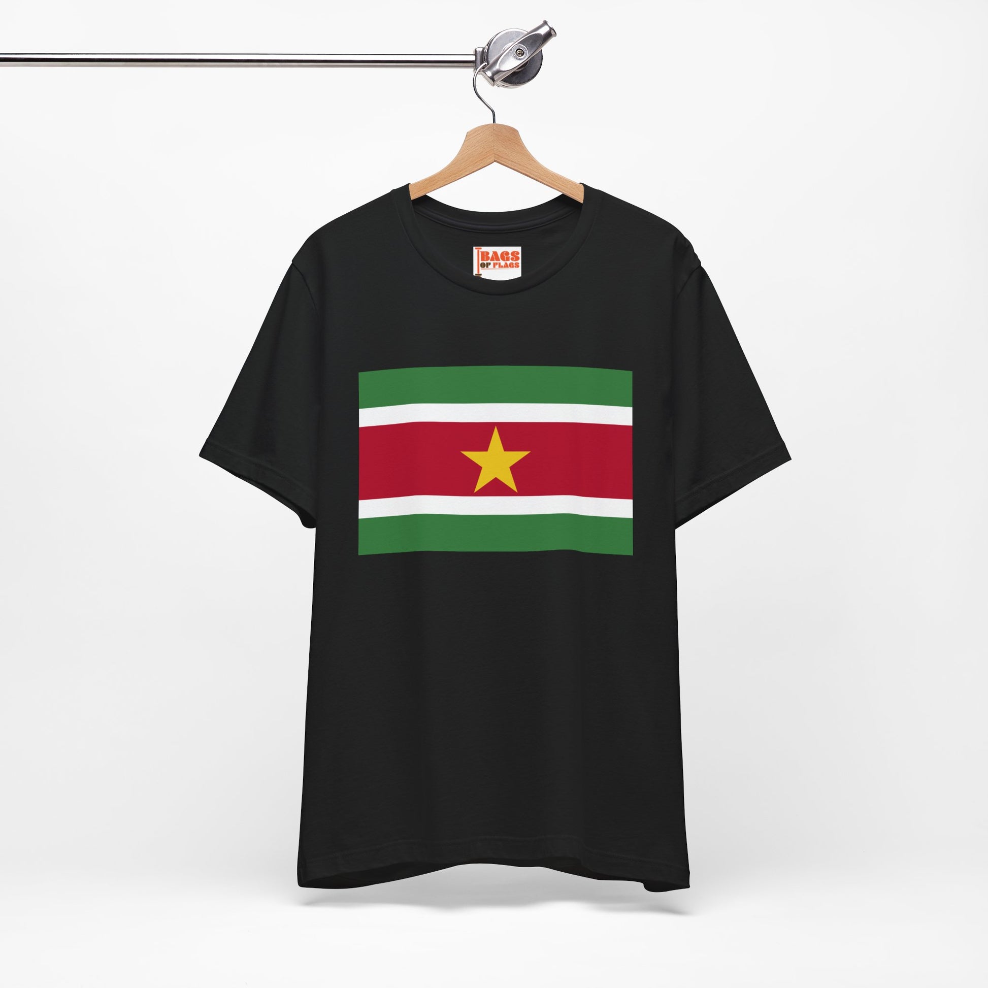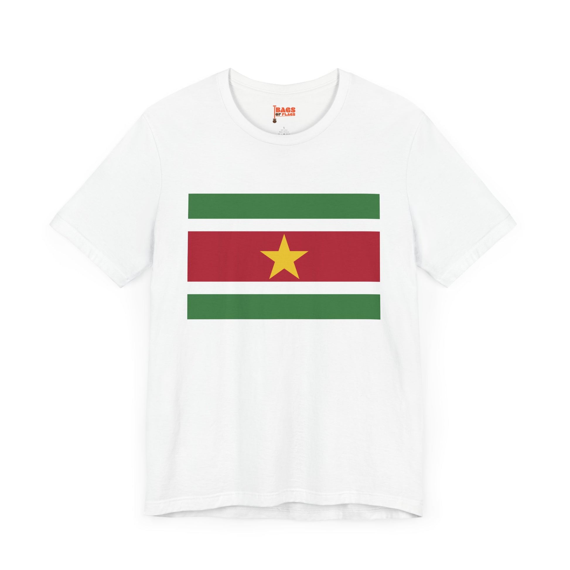 Show your pride for Suriname with this bold Suriname Flag T-shirt, featuring the country’s distinctive green, white, red stripes and iconic golden star. This tee perfectly captures the vibrant culture and rich heritage of Suriname, making it a meaningful addition to your casual wardrobe or a thoughtful gift for someone who loves the country.