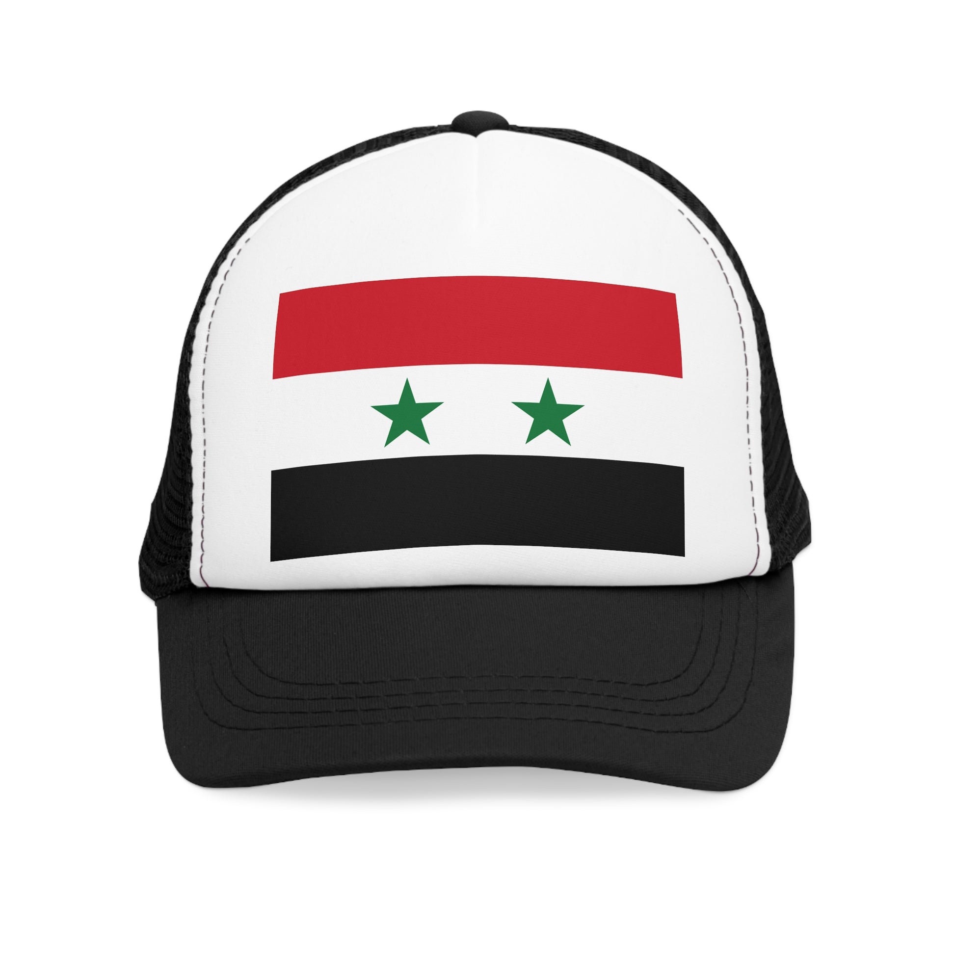 Show your pride for Syria with the Syria Trucker Cap, a stylish accessory that blends comfort, everyday wear, and cultural heritage. The structured front panel features a crisp printed Syrian flag, showcasing its bold red, white, and black stripes with two green stars, all in vivid detail. Lightweight and breathable, this cap is perfect for casual outings, travel, or outdoor activities, letting you carry a symbol of Syria wherever you go. Whether you have personal ties to the country or simply admire its rich history and culture, this cap provides a meaningful way to express national pride.