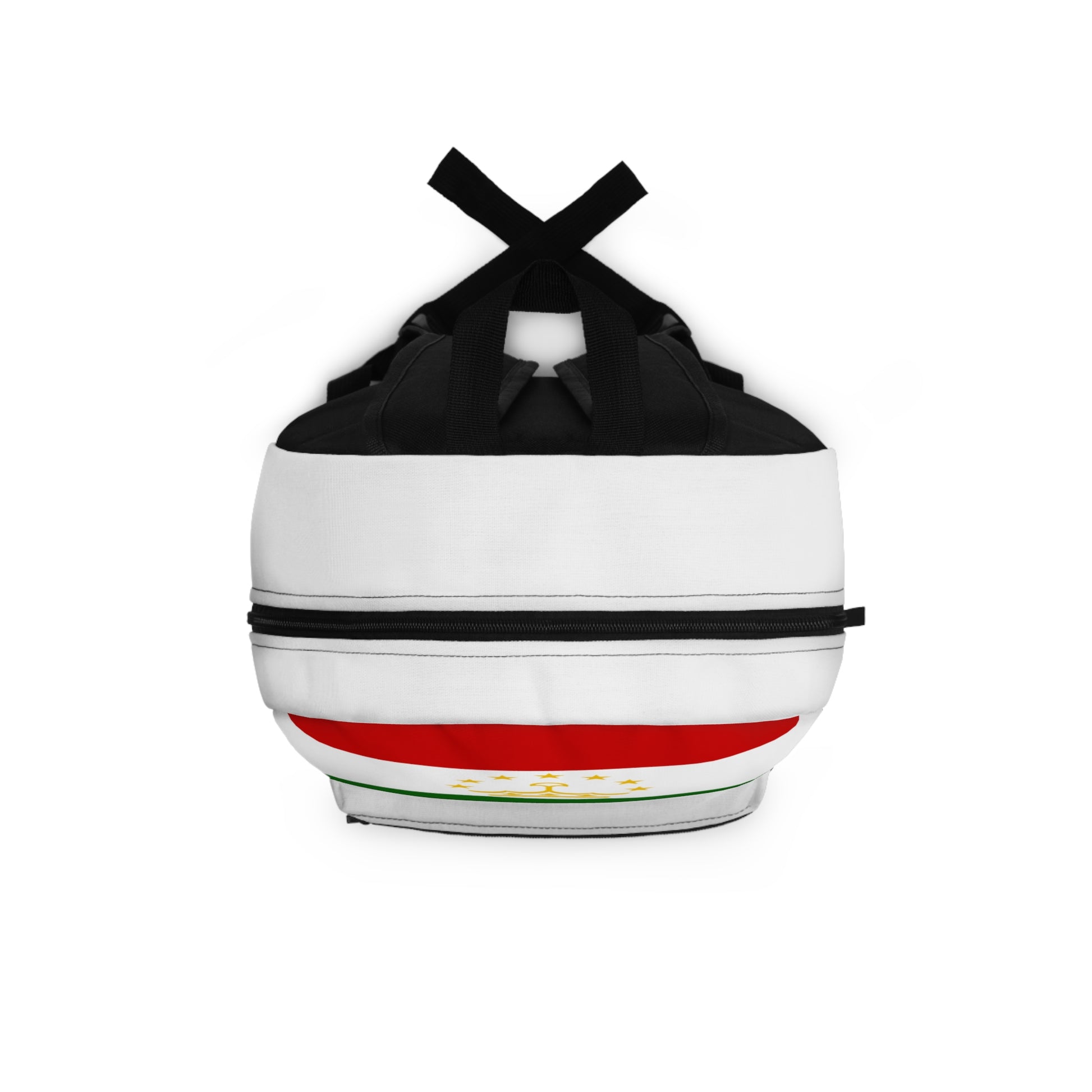Celebrate Central Asian pride with the Tajikistan Backpack, featuring the red, white, and green horizontal stripes with a golden crown and seven stars from the Tajikistani flag. Perfect for school, travel, work, or showing your love for Tajikistan, this backpack combines bold design with practical everyday use.