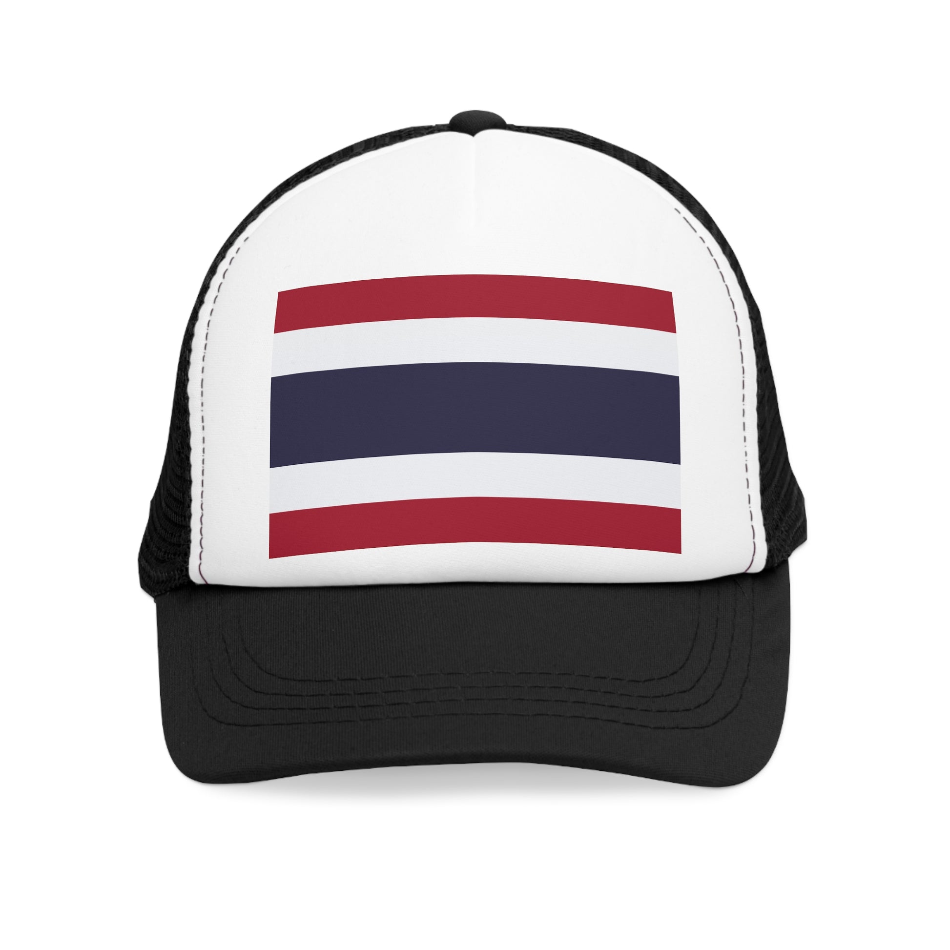 Show your pride for the Land of Smiles with the Thailand Trucker Cap, a stylish accessory that blends comfort, casual wear, and cultural symbolism. The structured front panel features a crisp printed Thai flag, showcasing its horizontal red, white, and blue stripes in vivid detail. Lightweight and breathable, this cap is perfect for everyday wear, travel, outdoor activities, or cultural events, allowing you to carry a symbol of Thailand wherever you go. Whether you have personal connections to the country or simply admire its rich history and vibrant culture, this cap provides a meaningful way to express national pride.