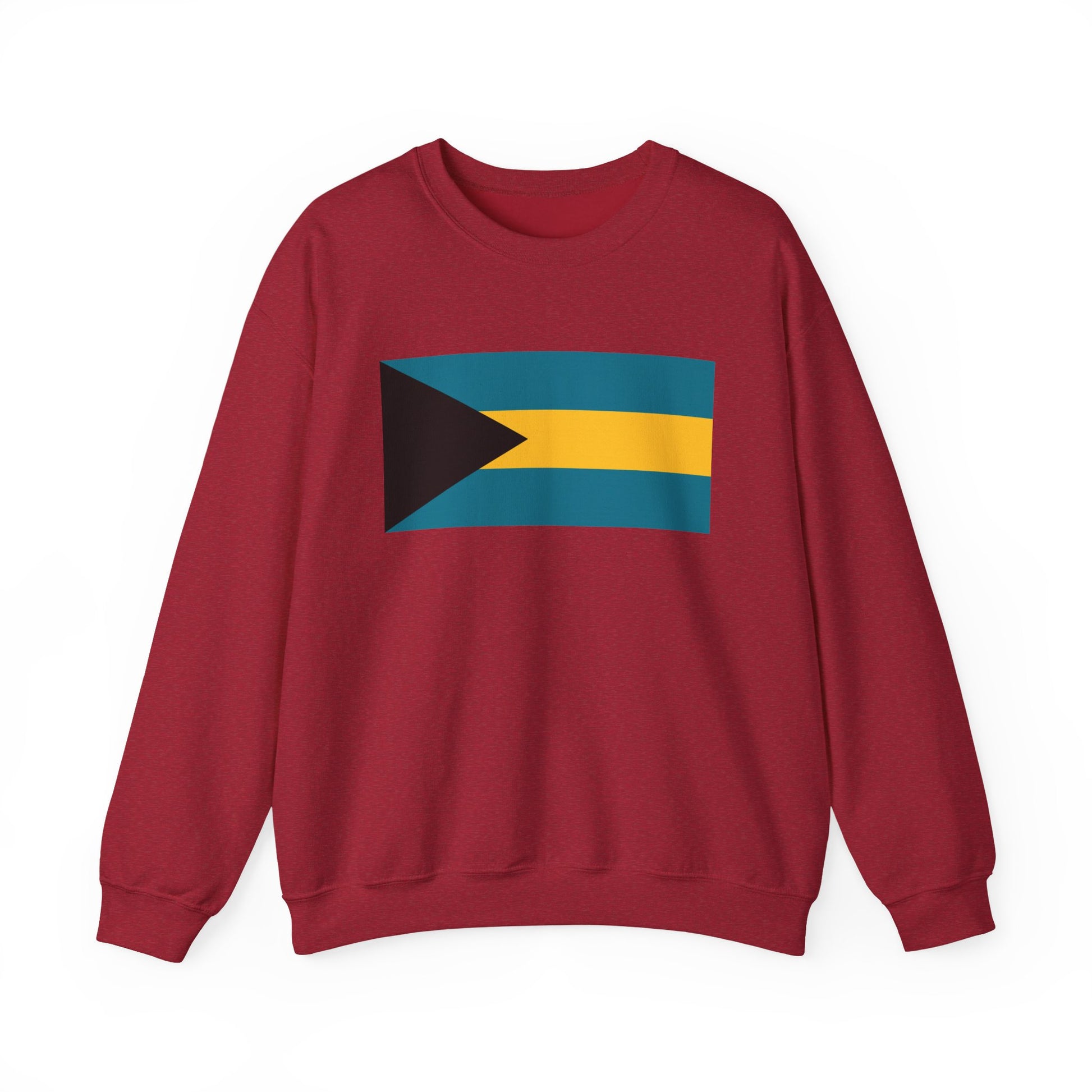 The Bahamas flag is full of meaning. The aquamarine stripes symbolize the surrounding sea, gold represents the sun and sandy beaches, and the black triangle stands for the strength and determination of the people. Wearing this sweatshirt lets you carry the essence of The Bahamas with you in comfort and style.