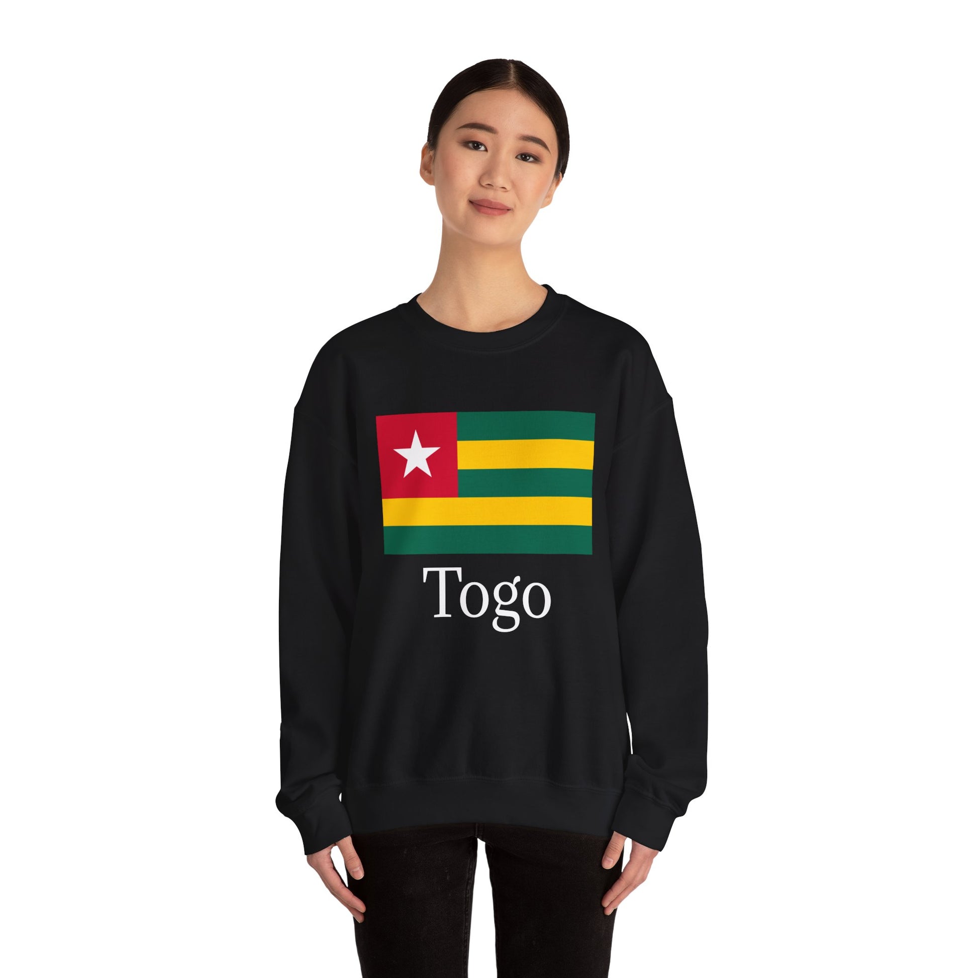 The Togo flag is a powerful emblem of the country’s history and aspirations. The green stripes signify hope, the fertile land, and agriculture; the yellow stripes represent Togo’s natural resources and prosperity. The red square symbolizes the blood shed in the struggle for independence and the unity of the people, while the white star stands for purity, wisdom, and peace. Wearing this sweatshirt allows you to embrace and honor Togo’s enduring spirit and rich cultural heritage.