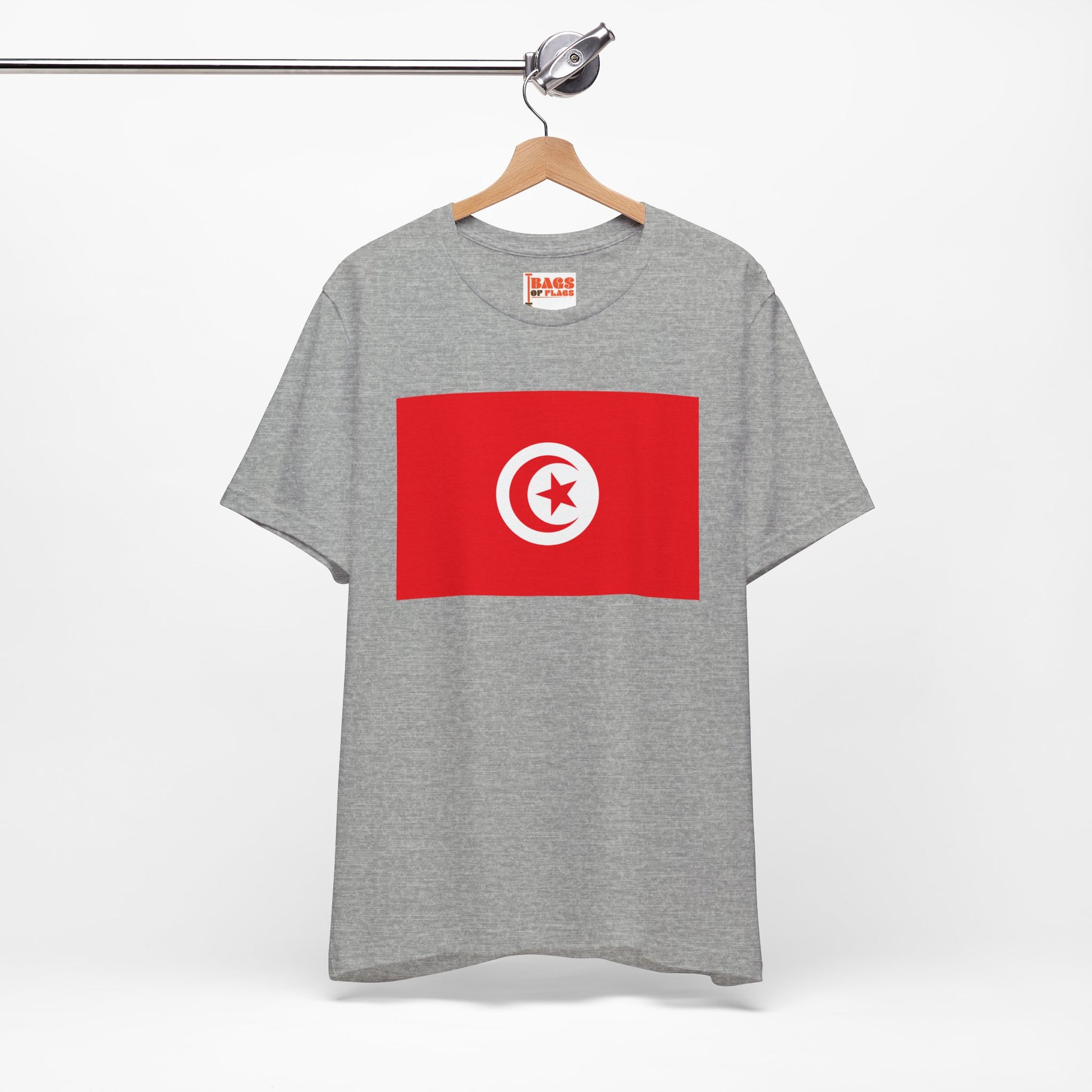 Show your pride for the vibrant nation of Tunisia with this bold Tunisia Flag T-shirt. Featuring the iconic red background with a white circle enclosing a red crescent and star, this design reflects Tunisia’s rich history, culture, and enduring spirit. Whether you’re connected by heritage, travel memories, or admiration, this tee brings the iconic flag to life in a comfortable, stylish way.