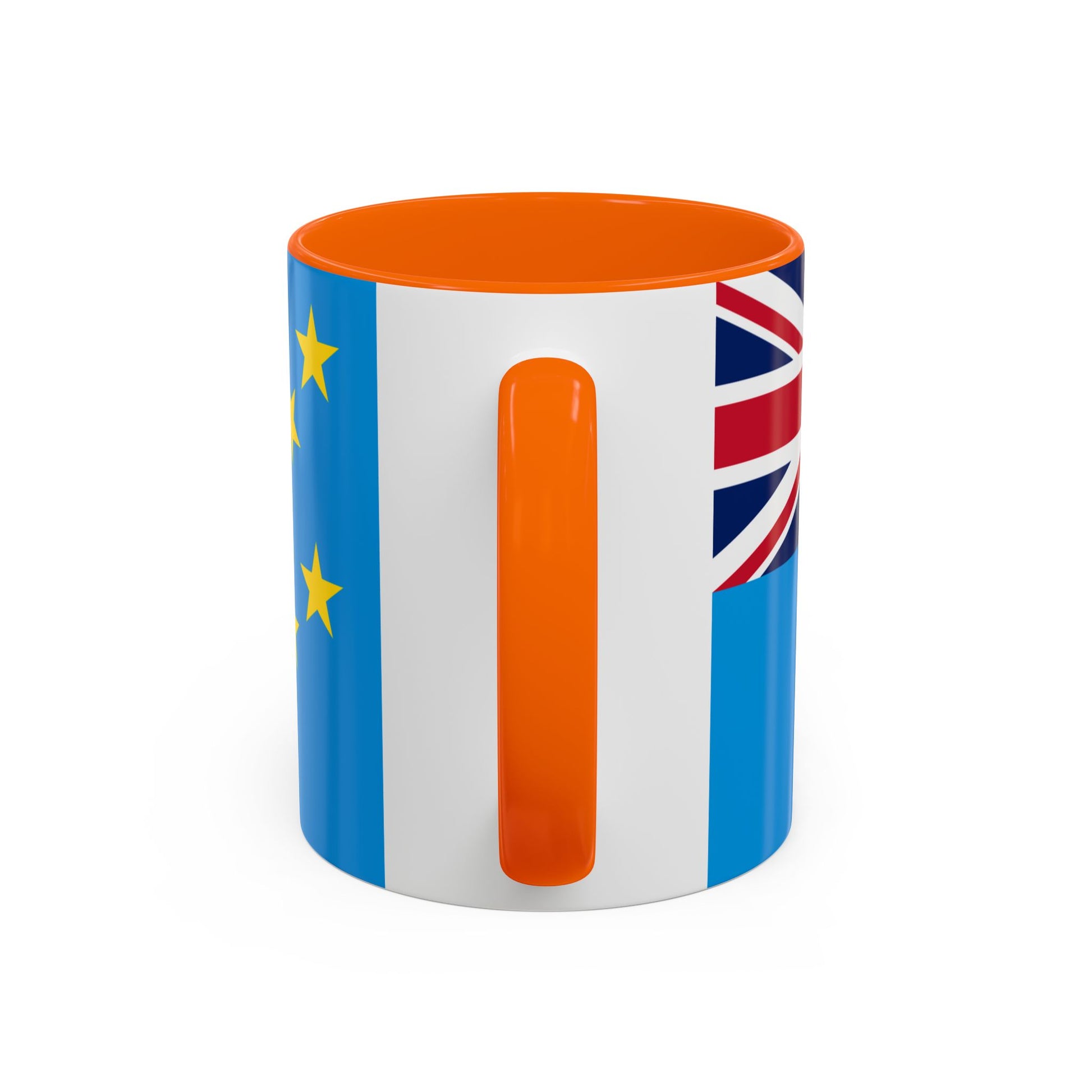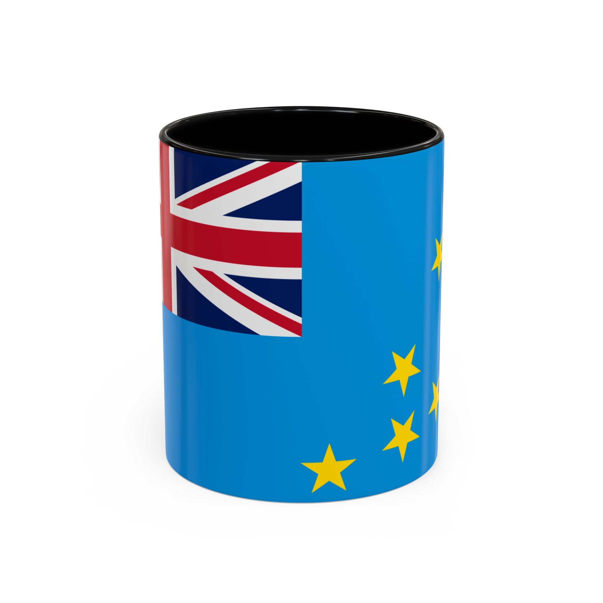 The sky-blue field represents the Pacific Ocean surrounding the islands, while the Union Jack signifies Tuvalu’s historical ties to the United Kingdom. The nine golden stars depict the islands of the nation, highlighting unity, geography, and cultural identity. Each element celebrates Tuvalu’s unique place in the world, making every sip from this mug meaningful.