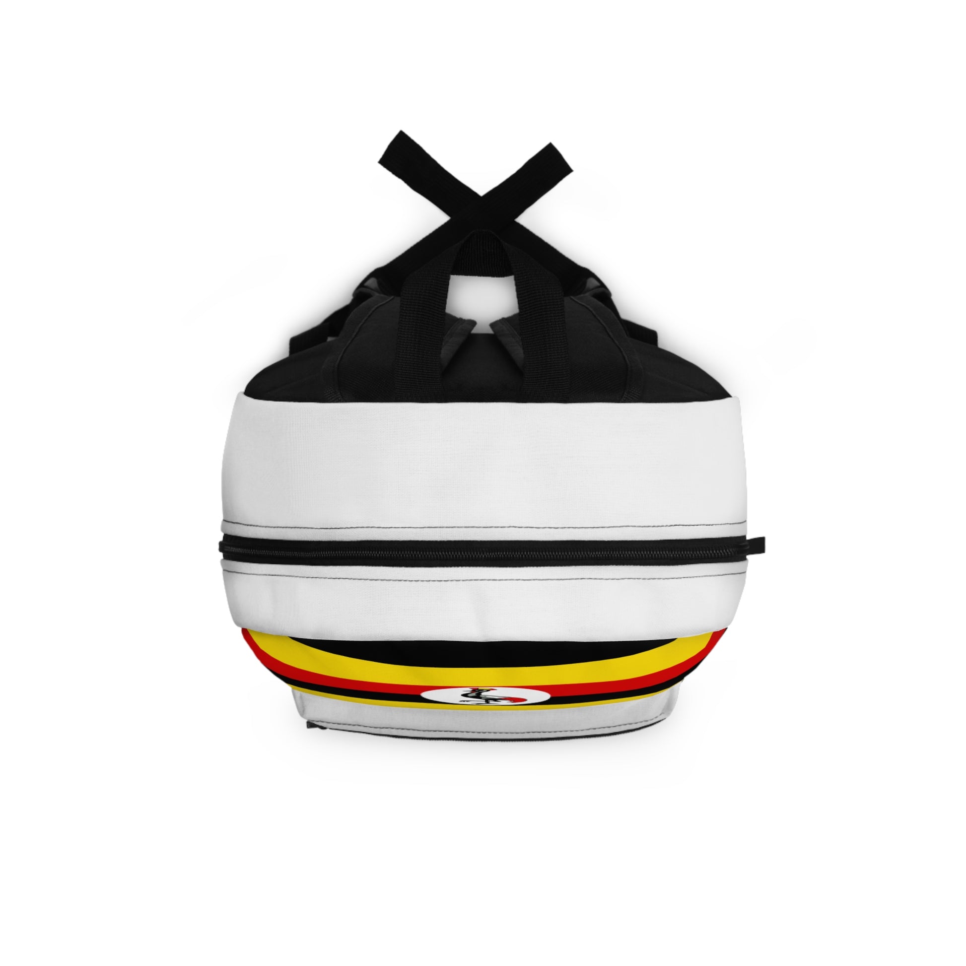 Celebrate East African pride with the Uganda Backpack, featuring the six horizontal black, yellow, and red stripes with the grey crowned crane in the center from the Ugandan flag. Perfect for school, travel, work, or showing love for Uganda, this backpack combines bold design with practical everyday functionality.