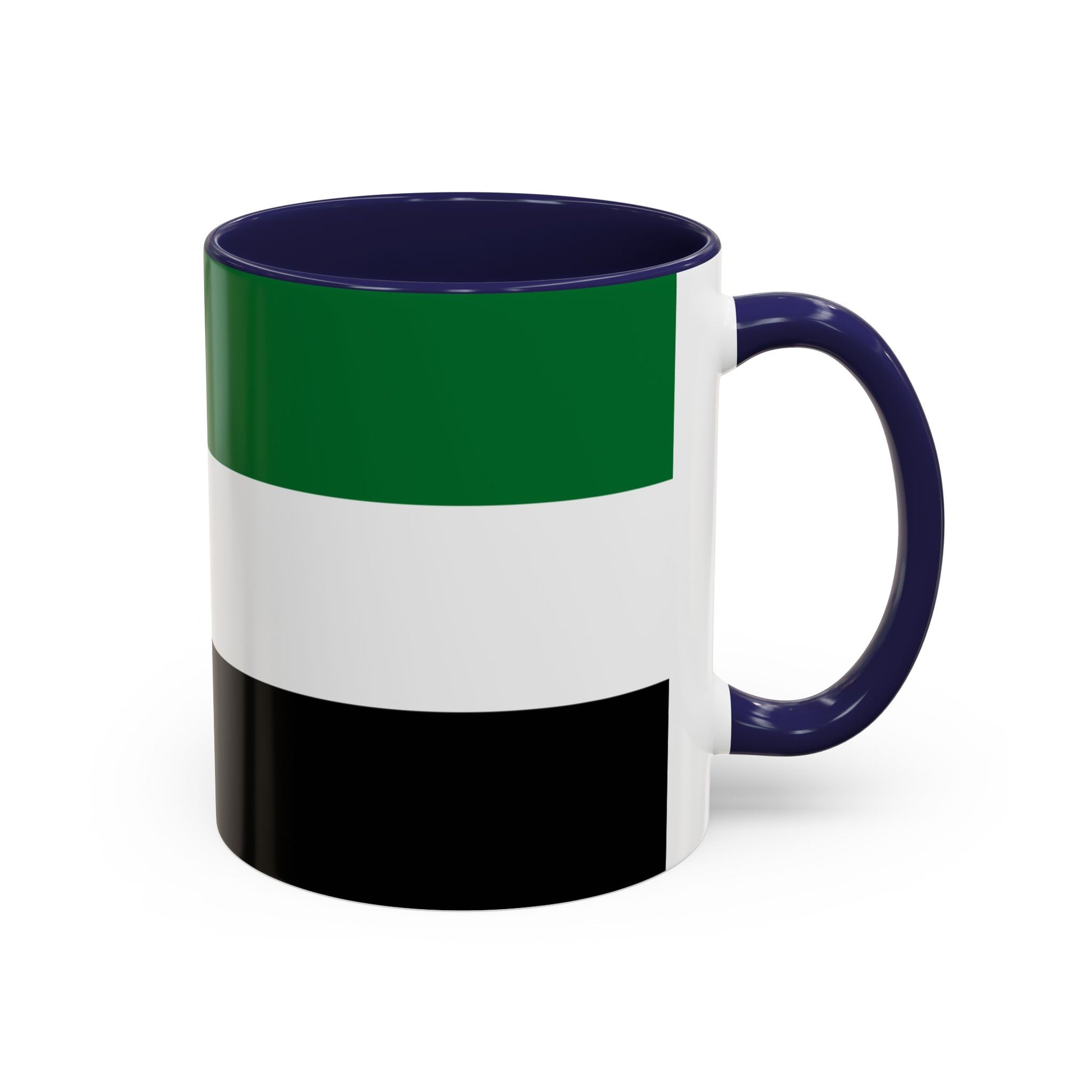 The green stripe represents prosperity and fertility, the white stripe symbolizes peace and neutrality, the black stripe stands for strength and courage, and the red vertical stripe reflects unity and the sacrifices of past generations. Each element honors the UAE’s history, values, and collective pride, making this mug a meaningful choice.