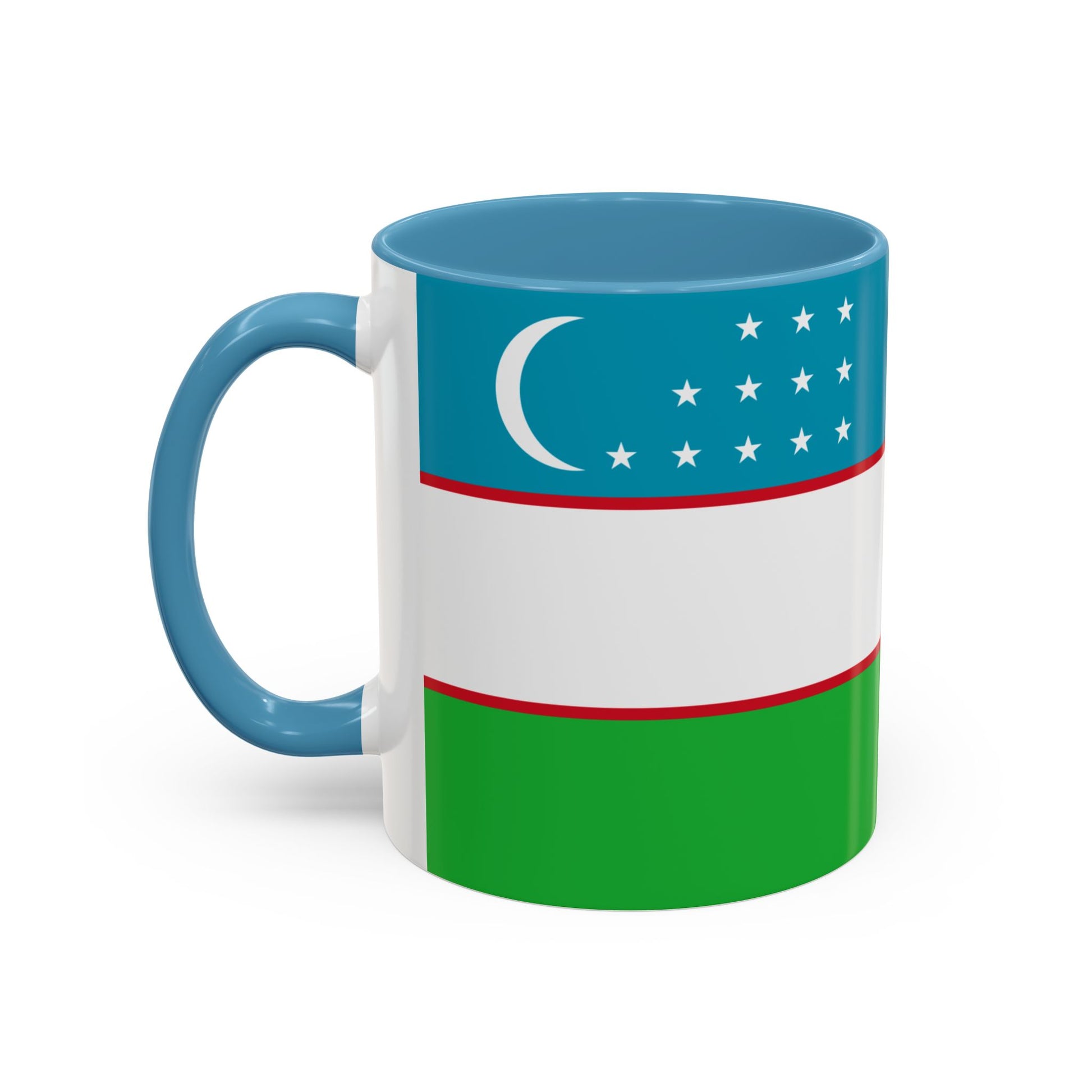 Celebrate Uzbekistan with every sip from the Uzbekistan Mug. This vibrant ceramic mug showcases the flag of Uzbekistan, with its blue, white, and green horizontal stripes separated by red fimbriations, along with a crescent moon and twelve stars in the top-left corner. Each element reflects the nation’s history, culture, and aspirations, making your coffee or tea ritual a small celebration of Uzbek pride. Perfect for morning coffee, afternoon tea, or a cozy hot chocolate, this mug adds color, meaning, and personality to your kitchen or workspace.