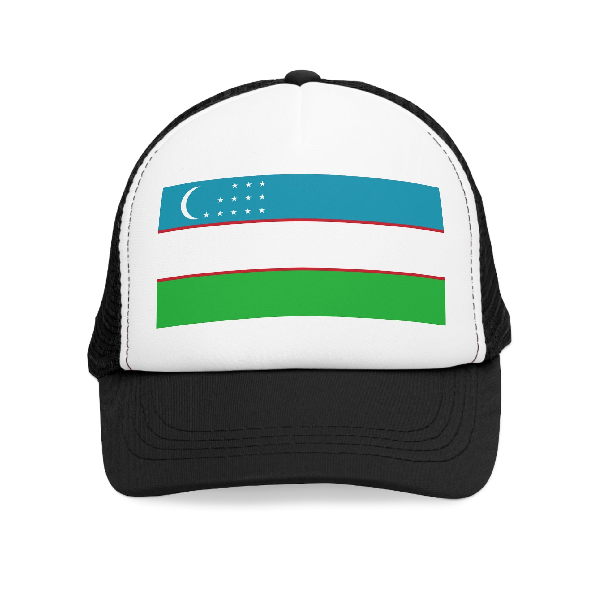 Celebrate Central Asian pride with the Uzbekistan Trucker Cap, a stylish accessory that blends comfort, casual wear, and cultural symbolism. The structured front panel features a crisp printed Uzbekistani flag, showcasing its horizontal stripes of blue, white, and green, separated by red fimbriations, along with the crescent and twelve stars in vivid detail. Lightweight and breathable, this cap is perfect for everyday wear, outdoor activities, travel, or cultural events, letting you carry a symbol of Uzbekistan wherever you go. Whether you have personal ties to the country or admire its rich history and heritage, this cap provides a meaningful way to express national pride.