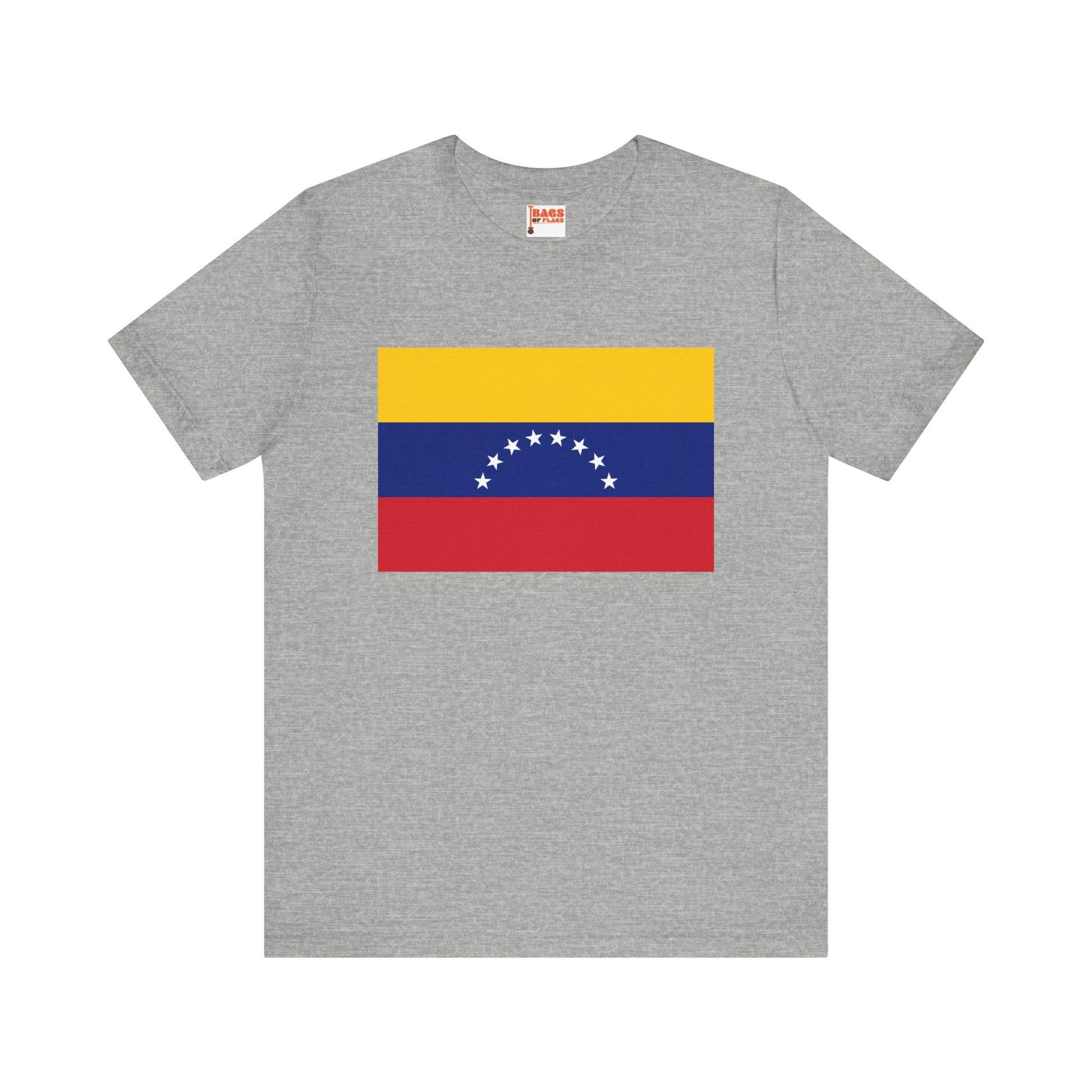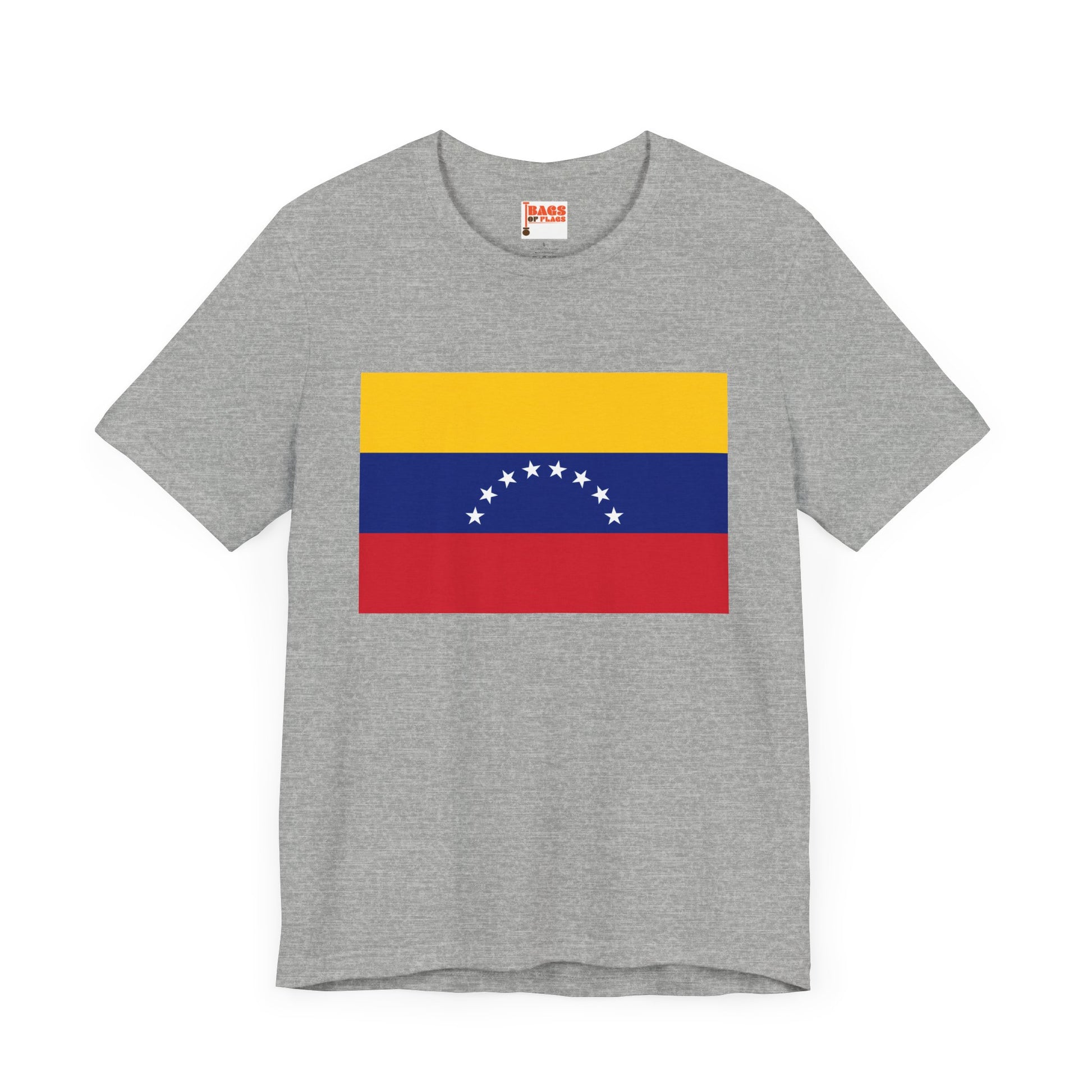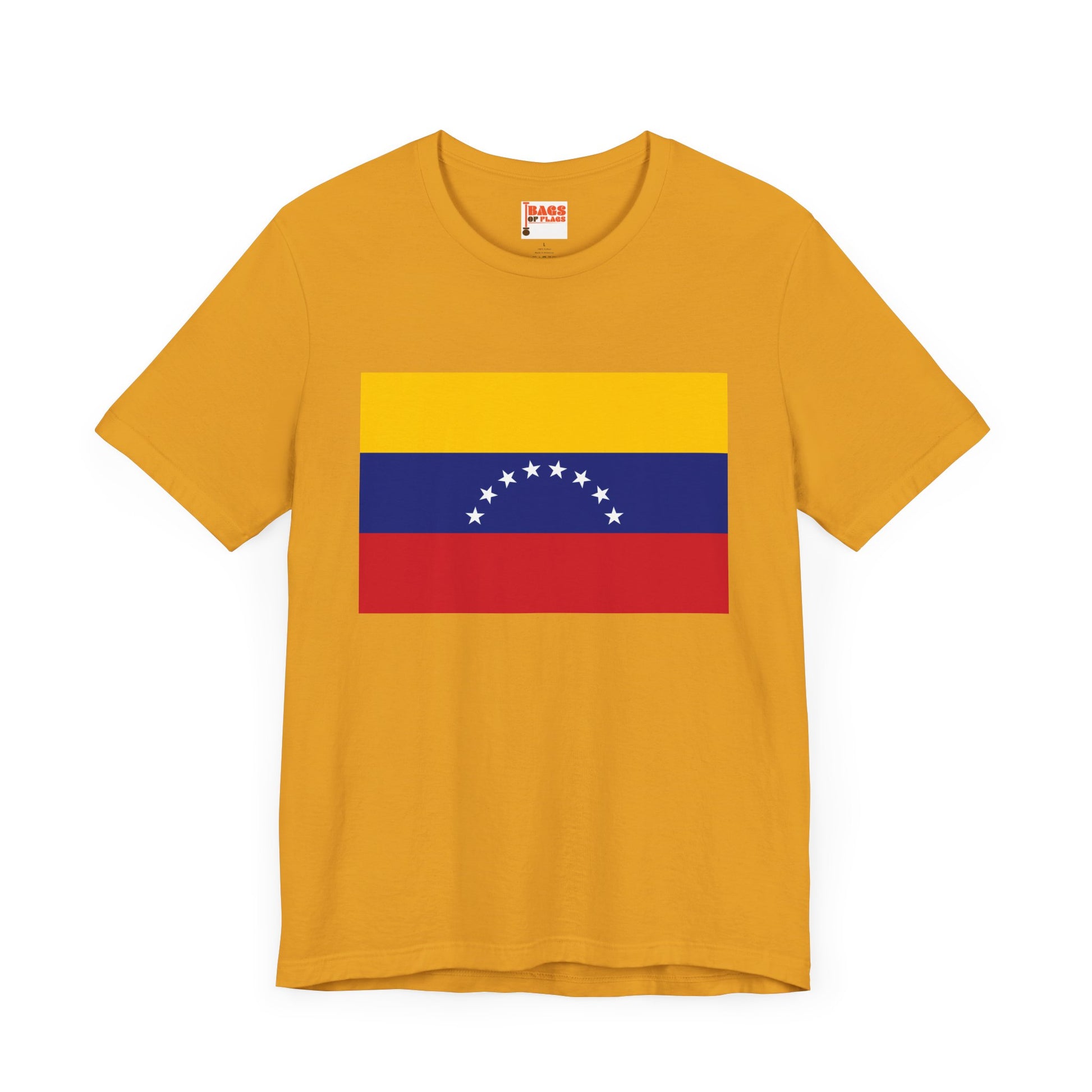 Show your Venezuelan pride with this bold and colorful Venezuela Flag T-shirt. Featuring the iconic tricolor of yellow, blue, and red, along with the eight white stars of the national flag, this shirt captures the spirit of resilience and independence that defines Venezuela. Whether you're attending cultural events, connecting with your roots, or simply love the look of the flag, this T-shirt is a perfect fit.
