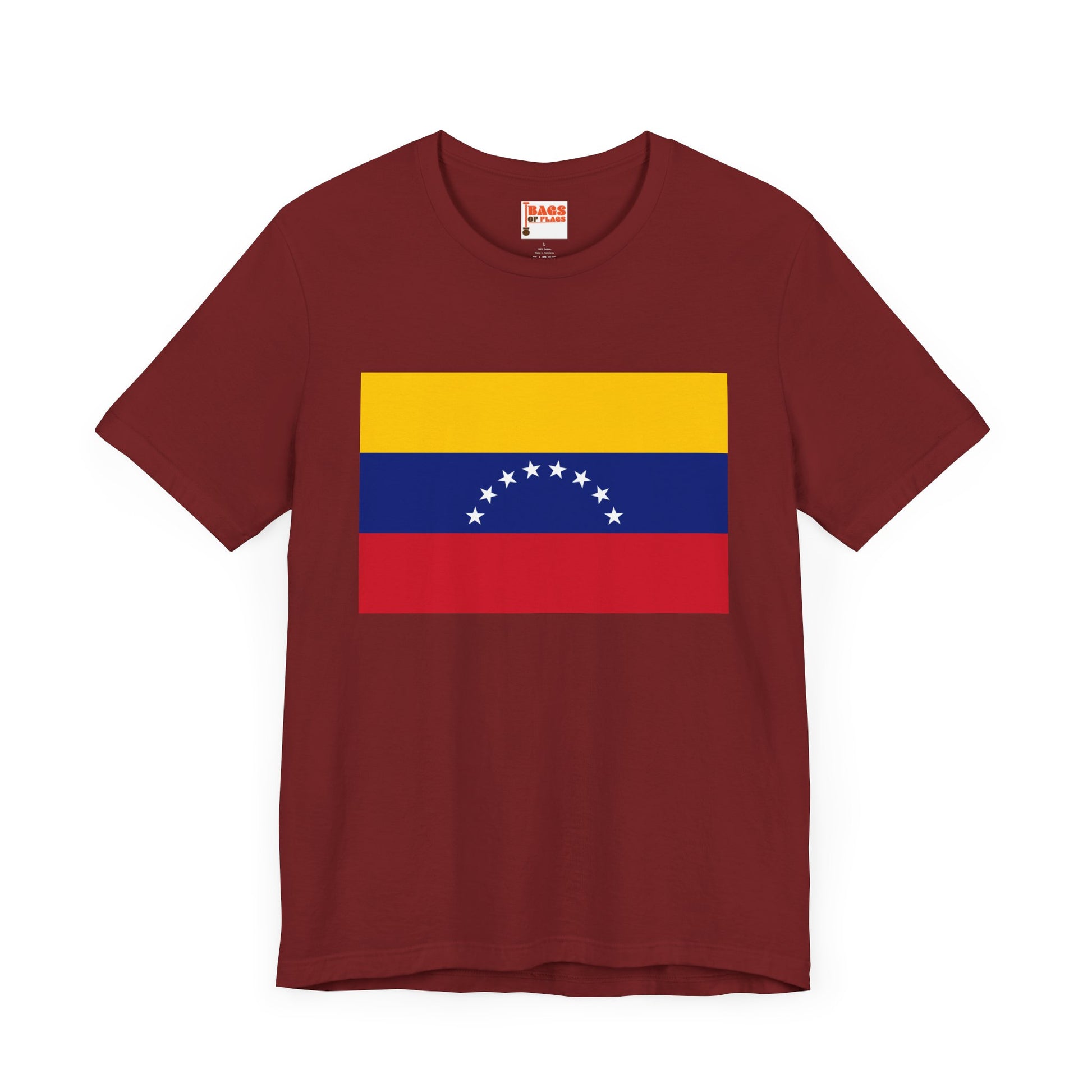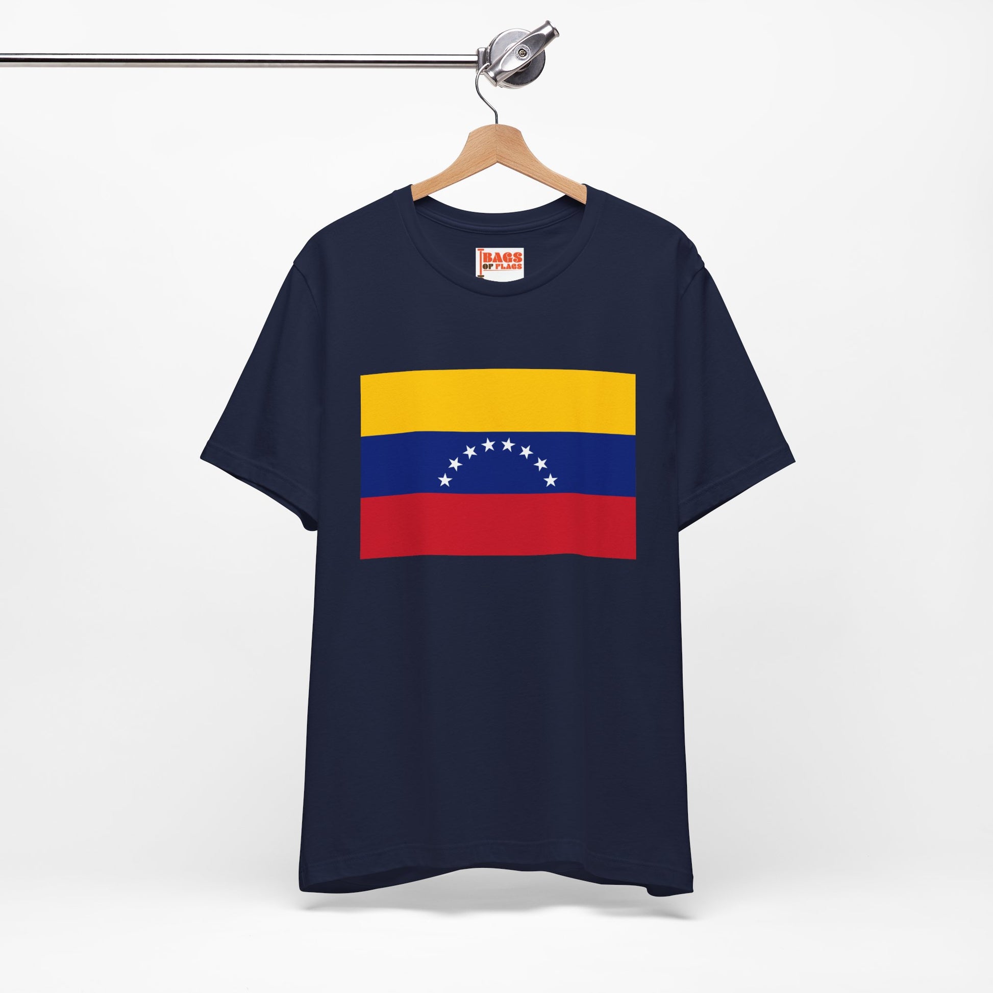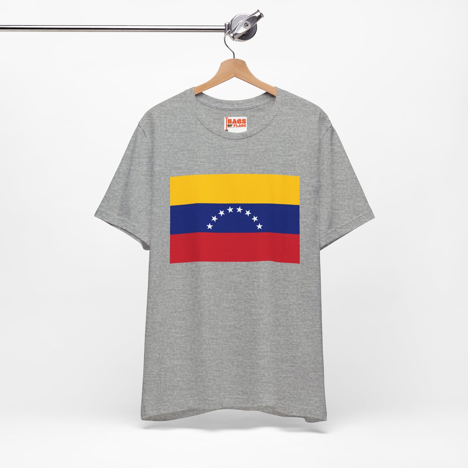 Show your Venezuelan pride with this bold and colorful Venezuela Flag T-shirt. Featuring the iconic tricolor of yellow, blue, and red, along with the eight white stars of the national flag, this shirt captures the spirit of resilience and independence that defines Venezuela. Whether you're attending cultural events, connecting with your roots, or simply love the look of the flag, this T-shirt is a perfect fit.