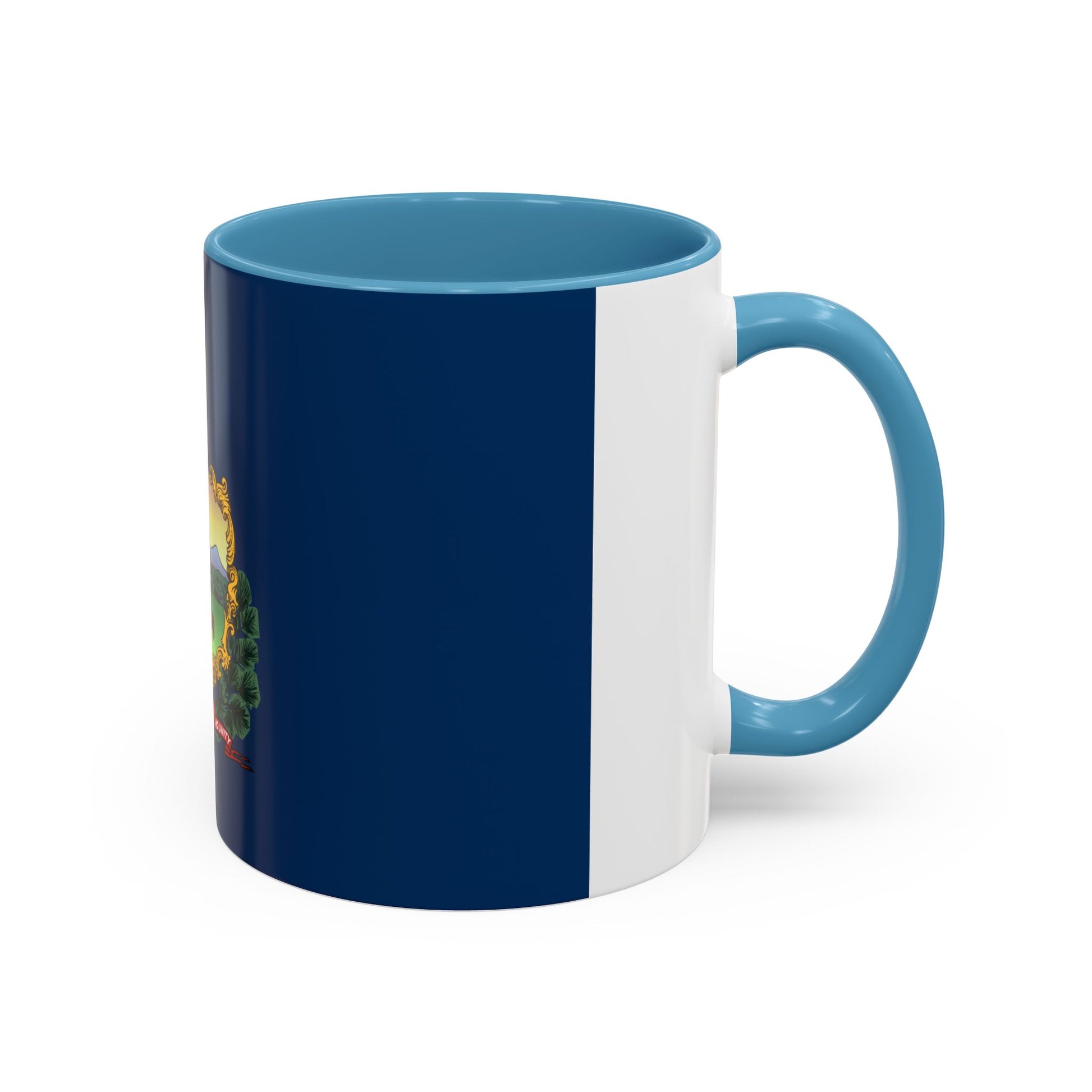 Start your morning with Green Mountain State pride using the Vermont Mug. This ceramic mug features the Vermont state flag, showcasing the state coat of arms on a deep blue background. The design includes a pine tree, cow, and sheaves of wheat, reflecting Vermont’s forests, agriculture, and rural heritage. The deer head at the top represents the state’s wildlife, celebrating Vermont’s natural beauty and identity.