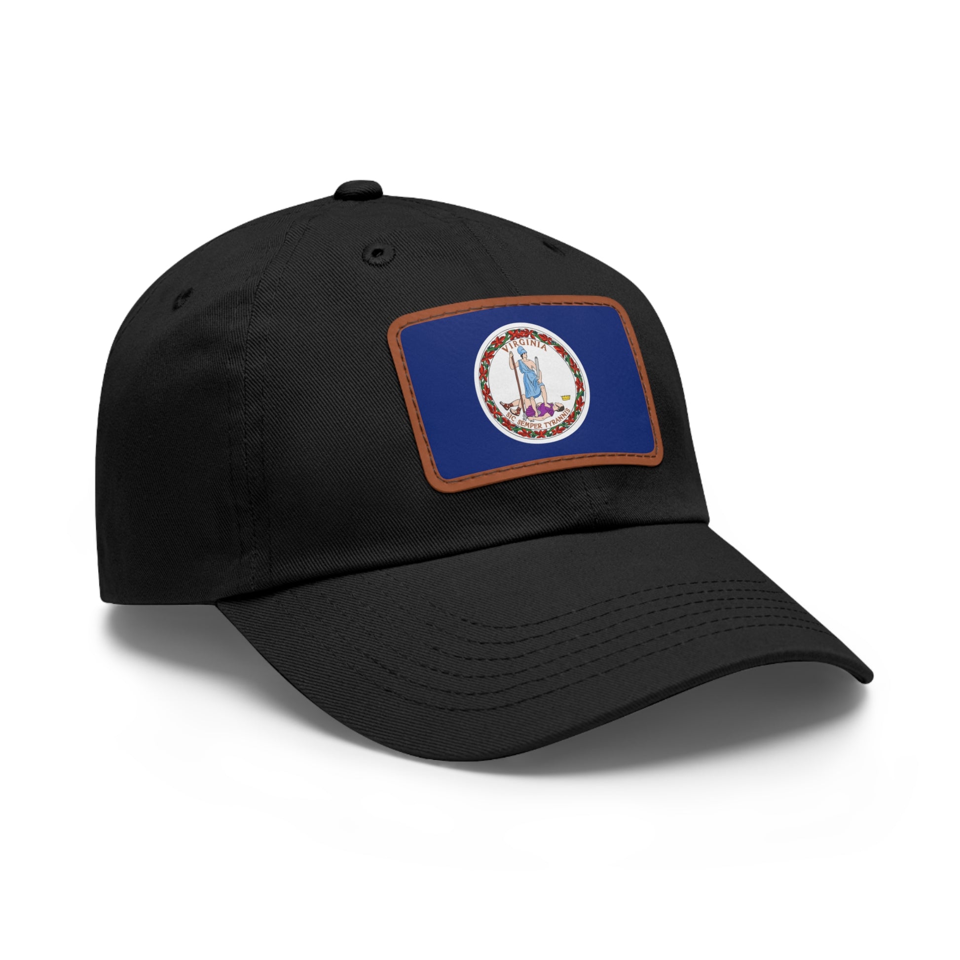 Show your Old Dominion pride with the Virginia Leather Patch Hat, a stylish and meaningful accessory that blends comfort, quality, and heritage. Crafted from 100% bio-washed chino twill, this hat is soft, breathable, and durable for everyday wear. The centerpiece is a faux leather patch engraved with the Virginia state flag, featuring Virtus, the goddess of virtue, standing over a defeated tyrant — a powerful symbol of courage, liberty, and Virginia’s historic values.