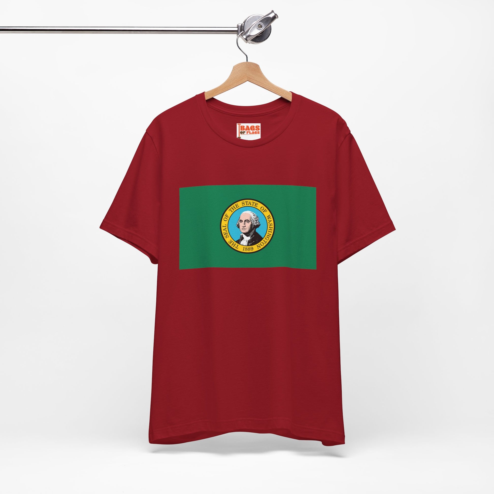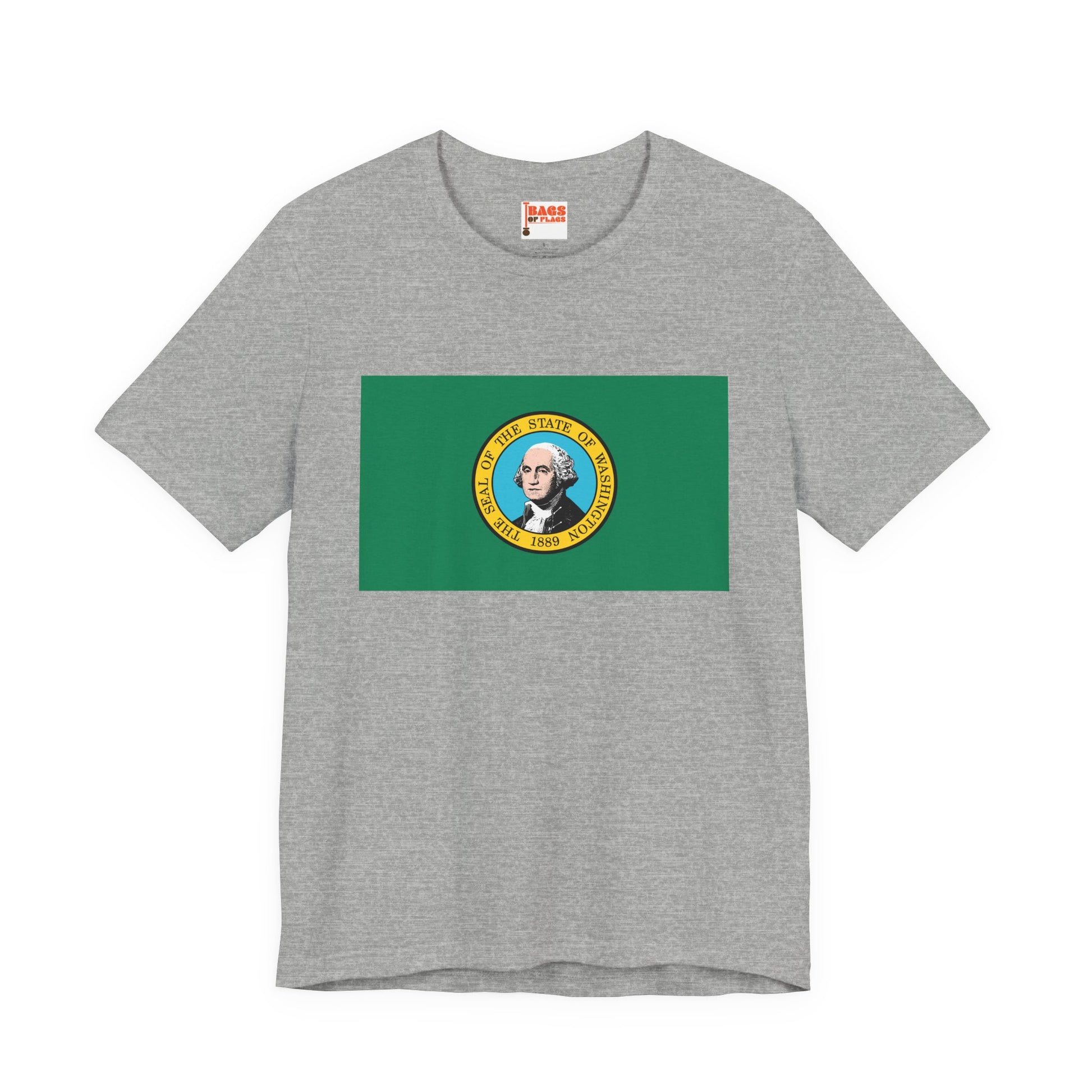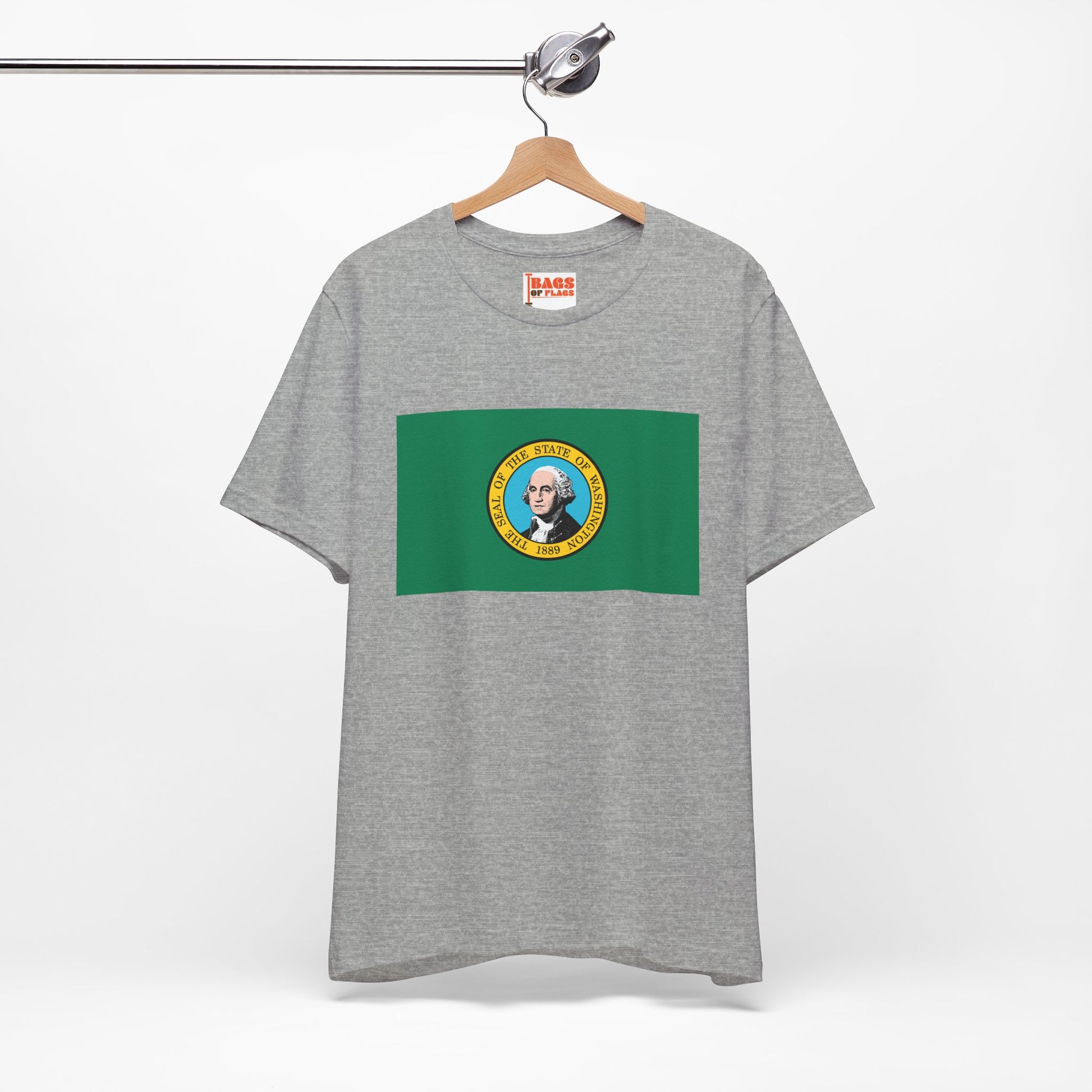 Show your Evergreen State pride with this Washington Flag T-shirt, a unisex tee designed for comfort, style, and state representation. Featuring the Washington state flag, with its rich green field and detailed state seal depicting George Washington, this shirt lets you celebrate the state’s heritage wherever you go. Perfect for casual wear, weekend adventures, or lounging at home, it’s a must-have for anyone proud of Washington.