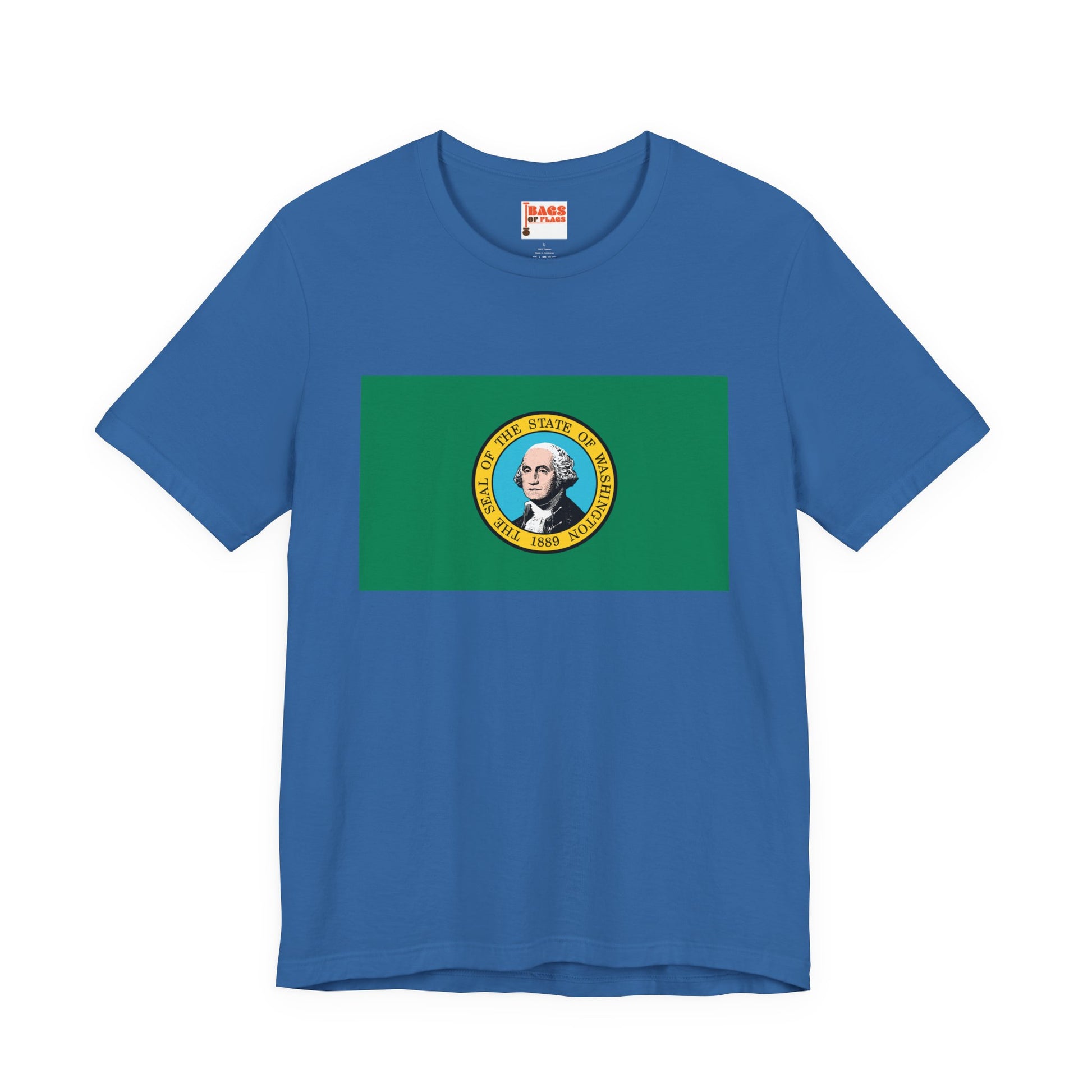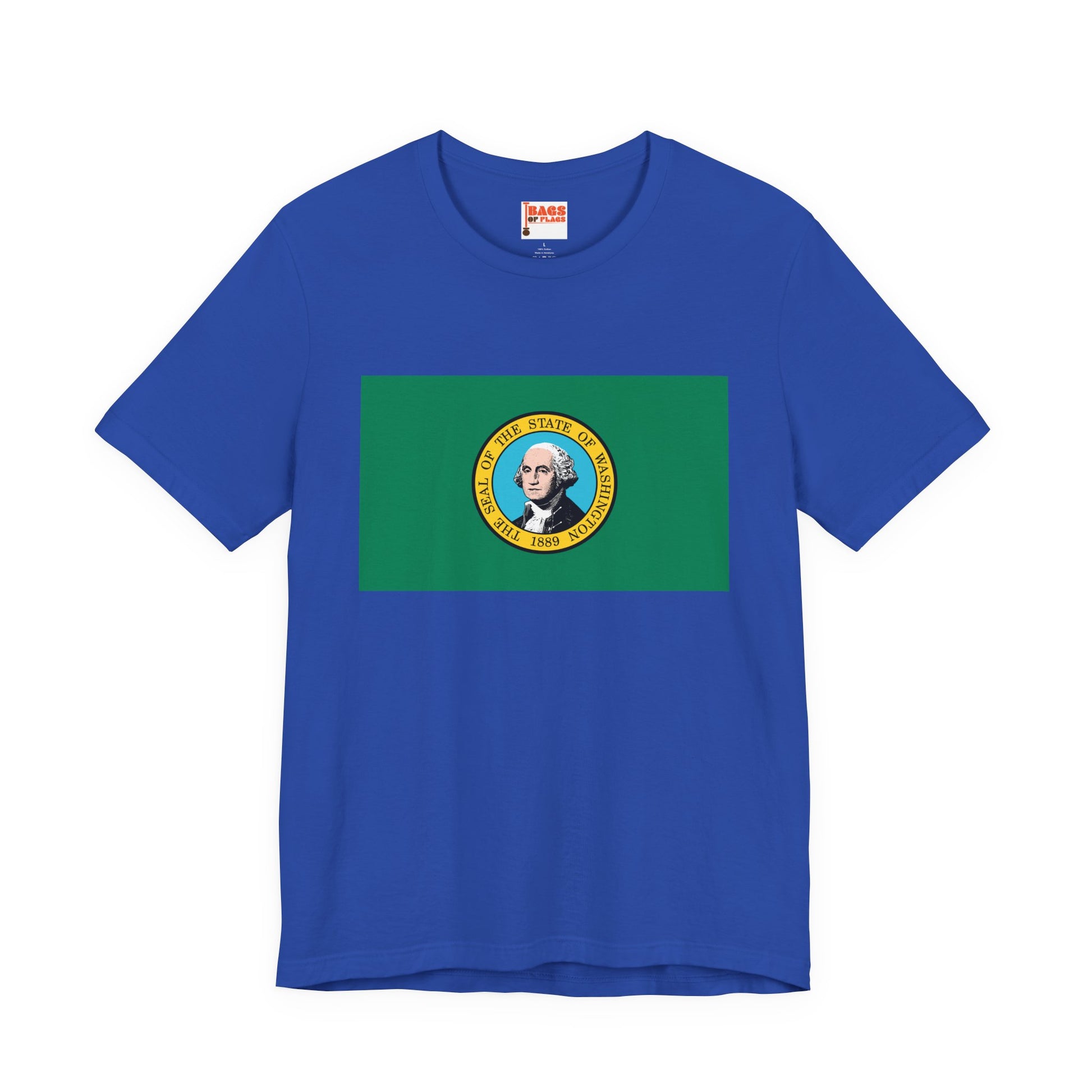 The Washington Flag T-shirt showcases the state’s symbols. The green field represents Washington’s evergreen forests and natural beauty, while the state seal honors George Washington, the nation’s first president and the state’s namesake. Wearing this tee celebrates Washington’s history, heritage, and enduring spirit.