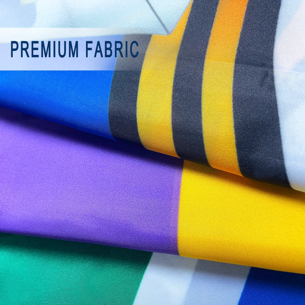 Made from high-quality polyester, this flag is lightweight yet durable, ensuring it flies smoothly even in a gentle breeze. Double-stitching reinforces the edges for extended durability, and the flag includes two grommets for easy hanging on a pole or wall.