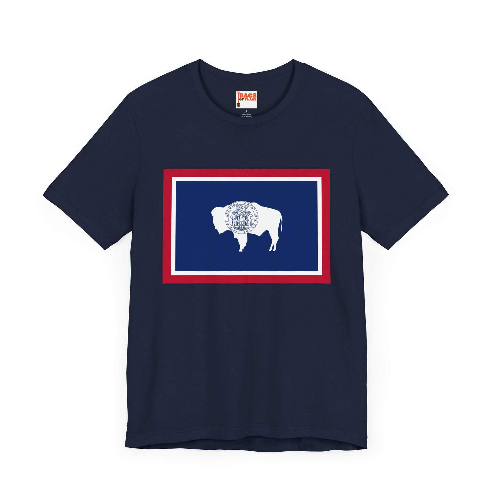 Show your Cowboy State pride with this Wyoming Flag T-shirt, a unisex tee designed for comfort, durability, and state pride. Featuring the Wyoming state flag, with its iconic bison silhouette and red, white, and blue colors, this shirt celebrates the state’s heritage, natural beauty, and rugged Western spirit. Perfect for casual wear, outdoor adventures, or lounging at home, it’s a must-have for any Wyoming fan.