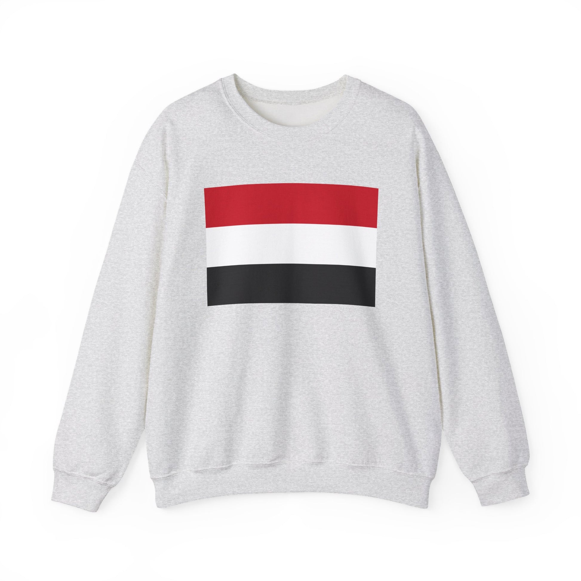 Show your pride and support for Yemen with the Yemen Flag Sweatshirt, a unisex crewneck designed for comfort, warmth, and everyday wear. Crafted from a soft cotton-polyester blend, this sweatshirt offers a relaxed fit perfect for casual outings, cultural celebrations, or cozy days at home. Its design prominently features the flag of Yemen, showcasing the bold red, white, and black horizontal stripes that symbolize the nation’s identity.